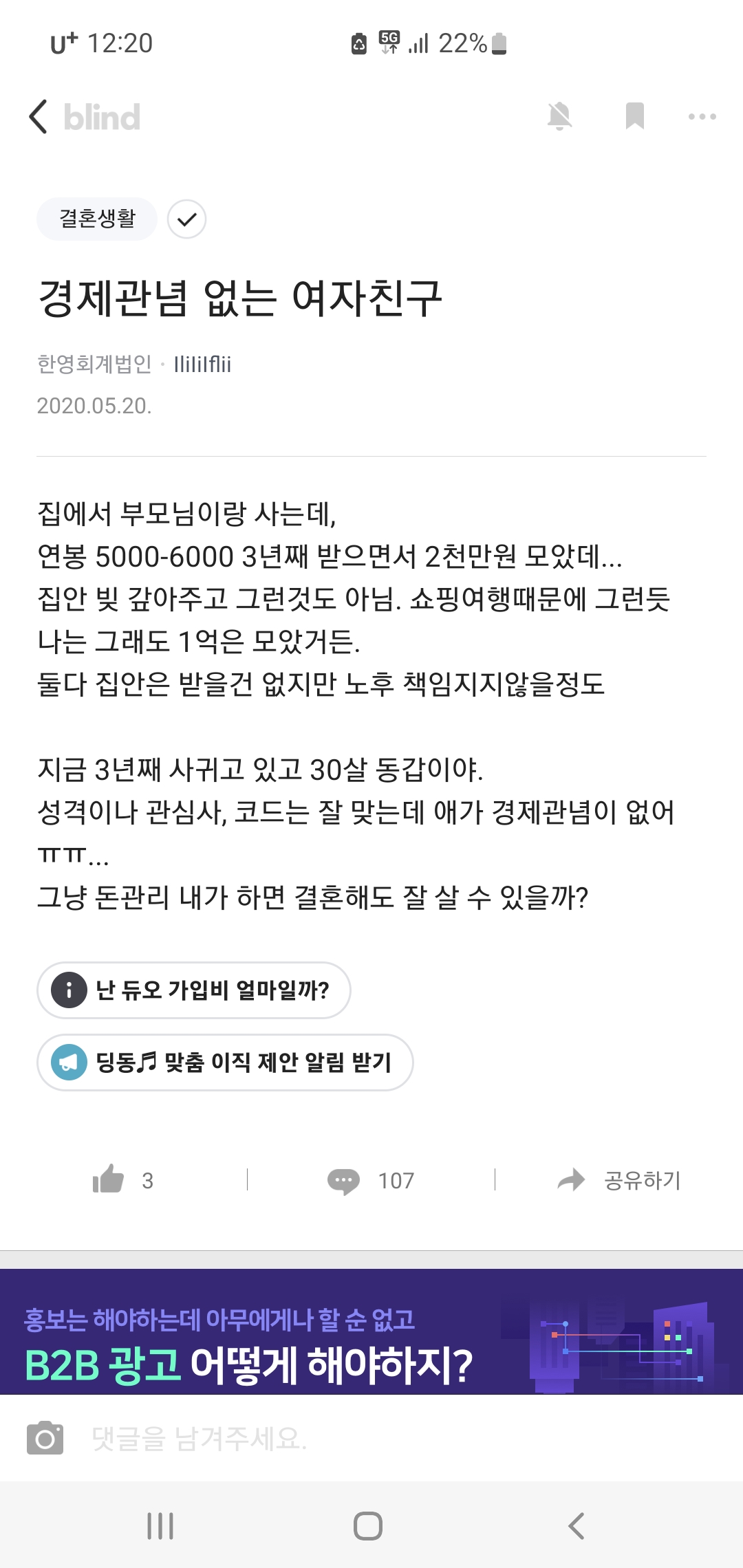 작성자앵겨봐 작성시간 22.08.15 경제관념이 저리 차이가 나는데 다른건 다 잘 맞는다는게 신기하네?