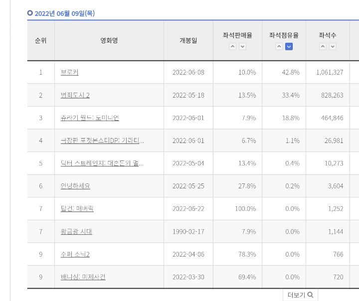 작성시간 22.09.08 근데 뭐 경쟁하는 개봉작이 없는 상황이라…