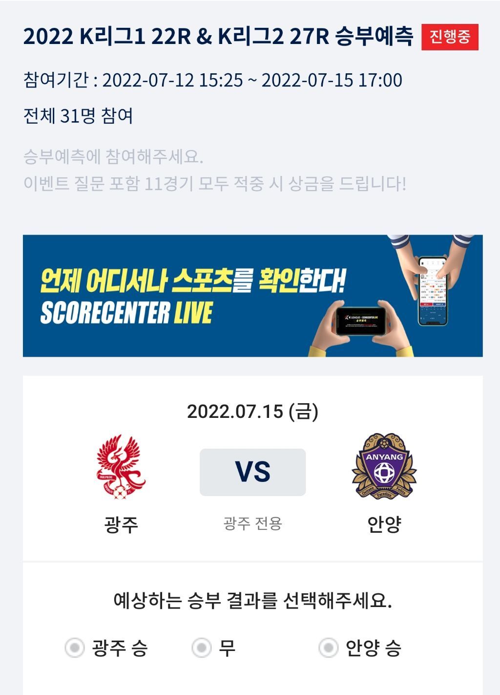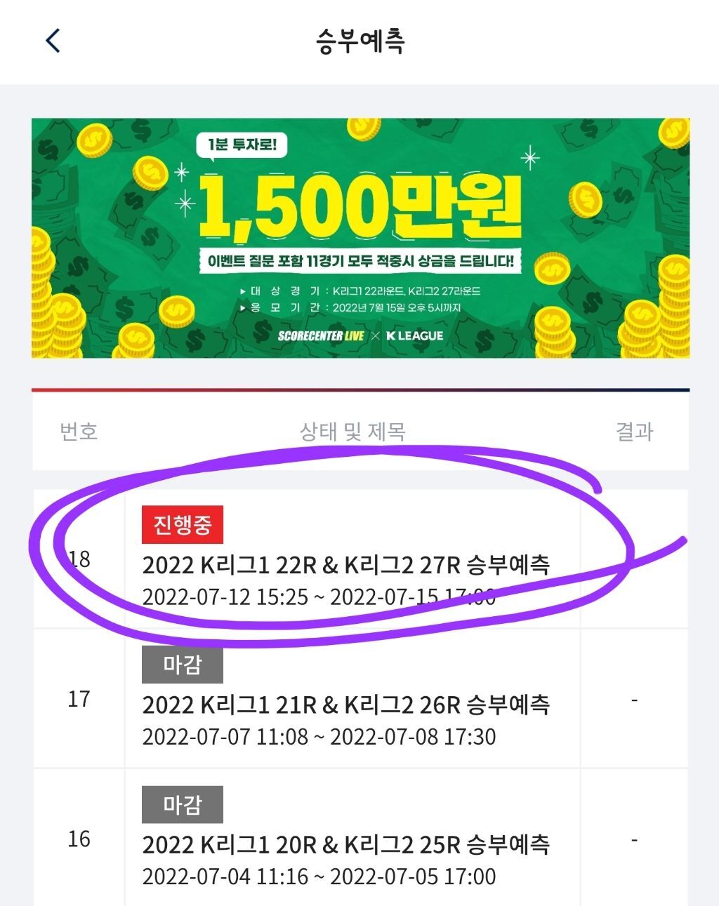 K리그曰 주인 없는 돈 찾아가세요. 작성자UAENA|작성시간22.07.12|조회수2,541 목록 댓글 11 글자크기 작게가 글자크기 크게가 1. K리그 어플 설치2. 우측 하단에 더보기 선택3. 승부예측 선택4. 진행중인 18회차 선택5. K리그1, K리그2 경기 승부예측6. 맞힐리 없으니 다음 회차에 또하기 다음검색 현재 게시글 추가 기능 열기 북마크 공유하기 신고 센터로 신고 댓글 댓글 11 댓글쓰기 답글쓰기 댓글 리스트 작성자Runup | 작성시간 22.07.12 시즌 종료 때까지 진짜 나오긴 할까요??? 작성자BANDO | 작성시간 22.07.12 주인 없는 돈 ㄹㅇㅋㅋ 작성자Clarence Seedorf | 작성시간 22.07.12 개어려움 ㅋㅋㅋㅋ 작성자Ralph Lauren | 작성시간 22.07.12 k리그는 알다가도 모르겠음 ㅋㅋㅋ 시즌은 기억안나는데 11월11일인가? 매치 전경기 1대1 무승부였던적도 있는 ㄷㄷ 작성자김민재(PSV,23) | 작성시간 22.07.12 나중에 저걸로 회식하겠네 댓글 전체보기