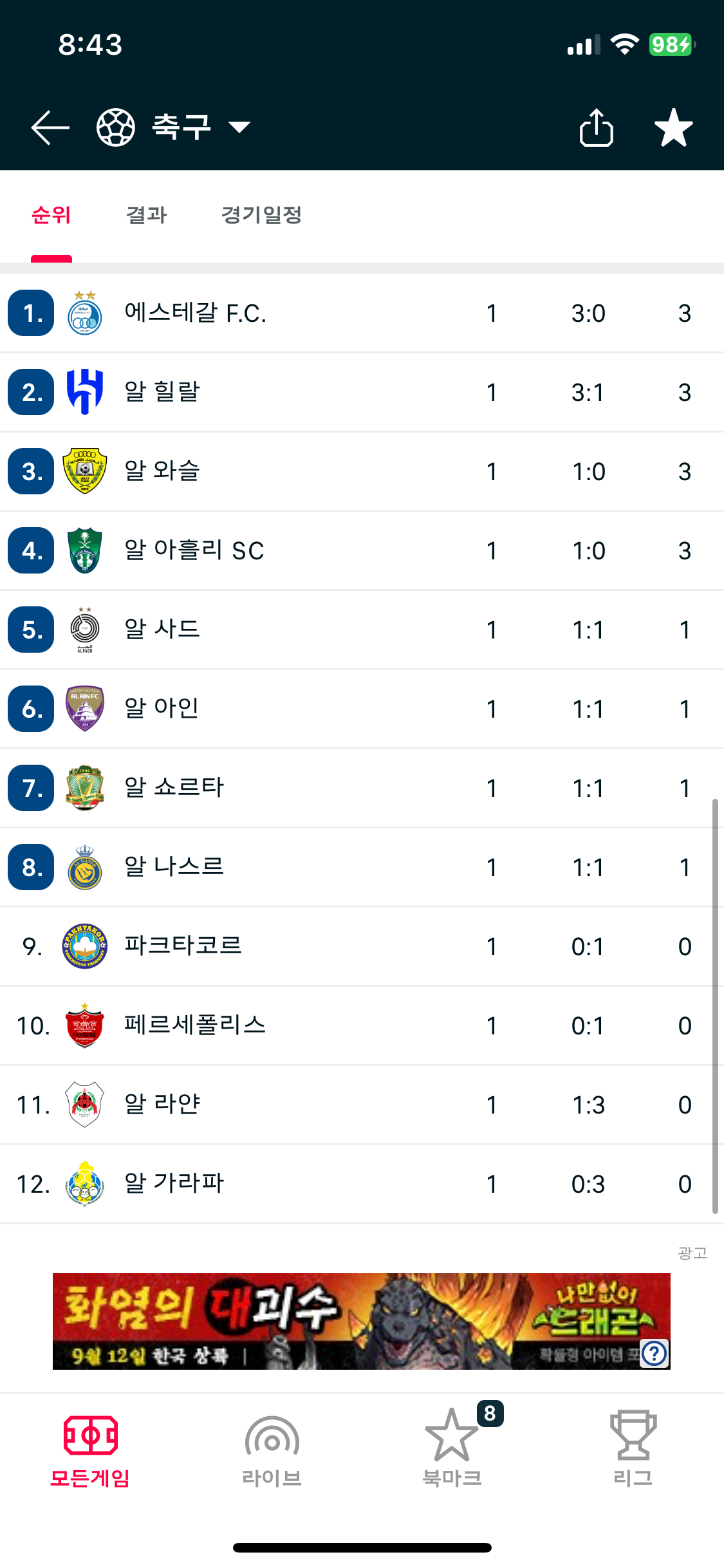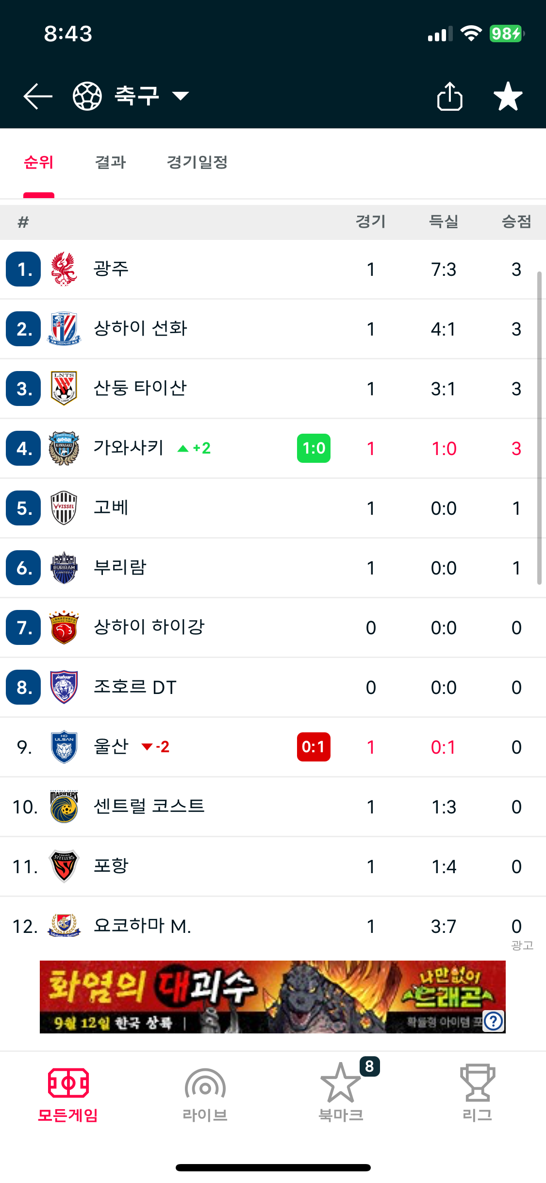 아챔 순위 작성자강원오렌지.|작성시간24.09.18|조회수3,827 목록 댓글 2 글자크기 작게가 글자크기 크게가 다음검색 현재 게시글 추가 기능 열기 북마크 공유하기 신고 센터로 신고 댓글 댓글 2 댓글쓰기 답글쓰기 댓글 리스트 작성자Leno | 작성시간 24.09.18 킹주 ㄷㄷㄷ 작성자에너황 | 작성시간 24.09.19 포항 ㅜㅠ 아시아 전통강호 인데 ㅠㅠ 댓글 전체보기