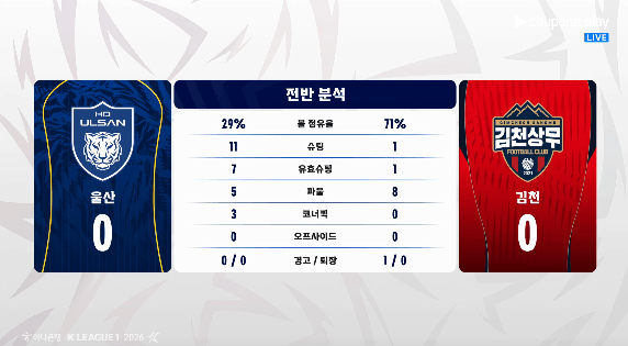 [움짤][울산 vs 김천] 전반 분석.gif 작성자음교수|작성시간26.03.22|조회수97 목록 댓글 1 글자크기 작게가 글자크기 크게가 다음검색 현재 게시글 추가 기능 열기 북마크 공유하기 신고 센터로 신고 댓글 댓글 1 댓글쓰기 답글쓰기 댓글 리스트 작성자폐인모드 | 작성시간 26.03.22 점유율이 3대7? 댓글 전체보기