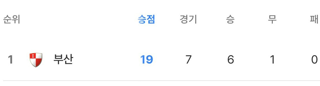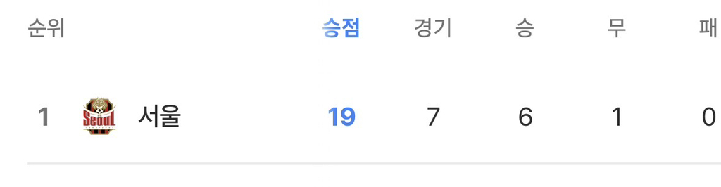 현재 승점 및 승무패 동일