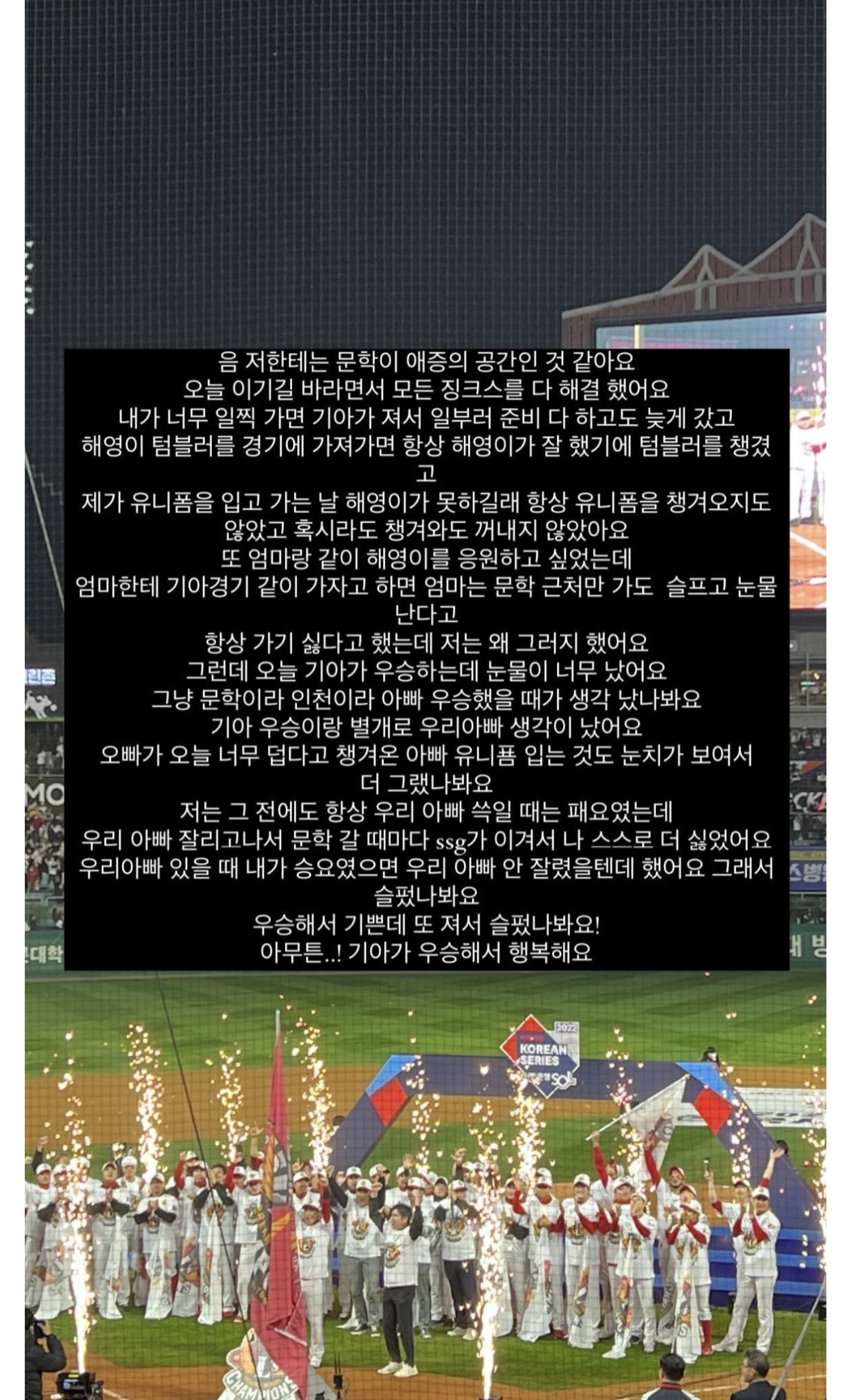 김원형 따님의 SNS 작성자뉴진스 김민지|작성시간24.09.17|조회수2,677 목록 댓글 7 글자크기 작게가 글자크기 크게가 김원형 딸의 남자친구는 기아 정해영 다음검색 현재 게시글 추가 기능 열기 북마크 공유하기 신고 센터로 신고 댓글 댓글 7 댓글쓰기 답글쓰기 댓글 리스트 작성자김정은 | 작성시간 24.09.17 ㅠㅠ 작성자소녀시대 윤아 | 작성시간 24.09.17 ㅠㅠㅠㅠ 작성자포메라니안 | 작성시간 24.09.17 해영이는 진짜 여자 잘만났다 작성자인생은타이밍 | 작성시간 24.09.17 ㅠㅠ 작성자전미도 | 작성시간 24.09.18 ㅠㅠ 댓글 전체보기
