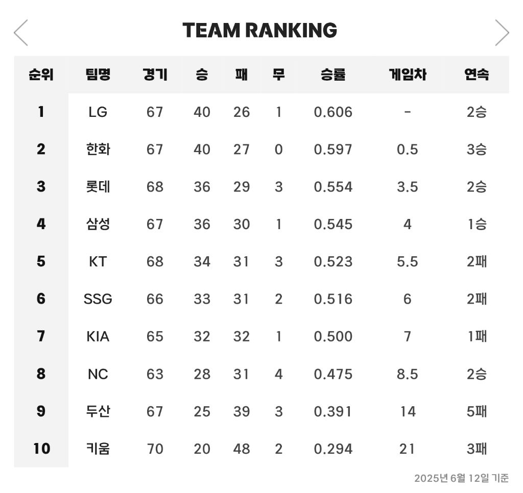 작성시간 25.06.12 5할됐으니 내일은 이기겠다 그리고 모레 지고 반복 개노답팀