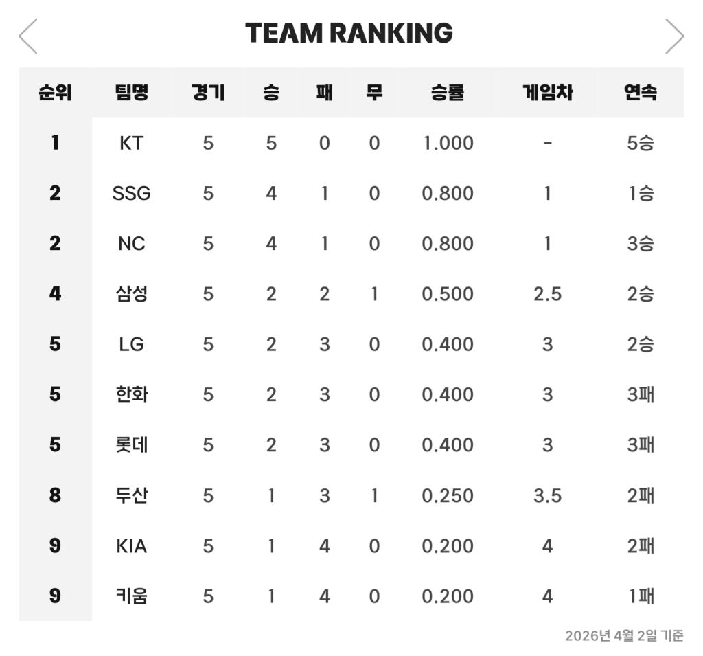 초반이지만 기아는 9등으로 마무리할 듯