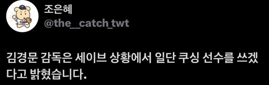 [야구]김경문, "마무리는 쿠싱" 작성자카리나 네뷸라|작성시간26.04.15|조회수330 목록 댓글 11 글자크기 작게가 글자크기 크게가 예...? 다음검색 현재 게시글 추가 기능 열기 북마크 공유하기 신고 센터로 신고 댓글 댓글 11 댓글쓰기 답글쓰기 댓글 리스트 작성자디턱스 | 작성시간 26.04.15 여러분 걱정 마십쇼. 세이브 상황이 오지 않습니다. 작성자Croda | 작성시간 26.04.15 말이 마무리지 그냥 갈겠다는거 아님?? 작성자정예린2 | 작성시간 26.04.15 헐 ㄷㄷ 작성자H_Crespo | 작성시간 26.04.15 ????? 작성자Matheus Cunha | 작성시간 26.04.15 ㅋㅋㅋㅋㅋㅋㅋ나가라 댓글 전체보기