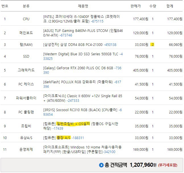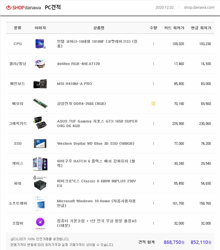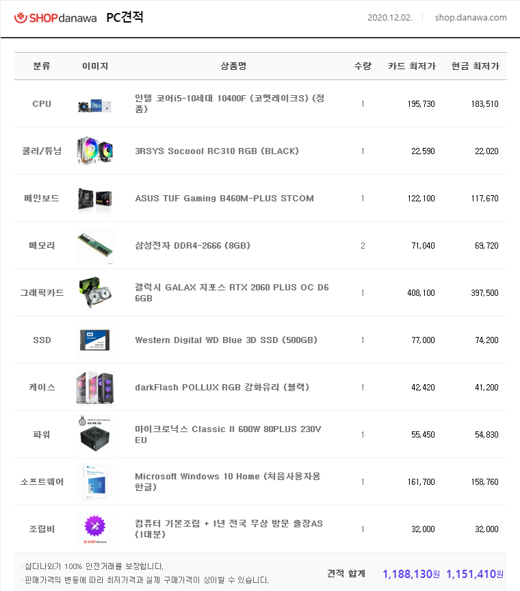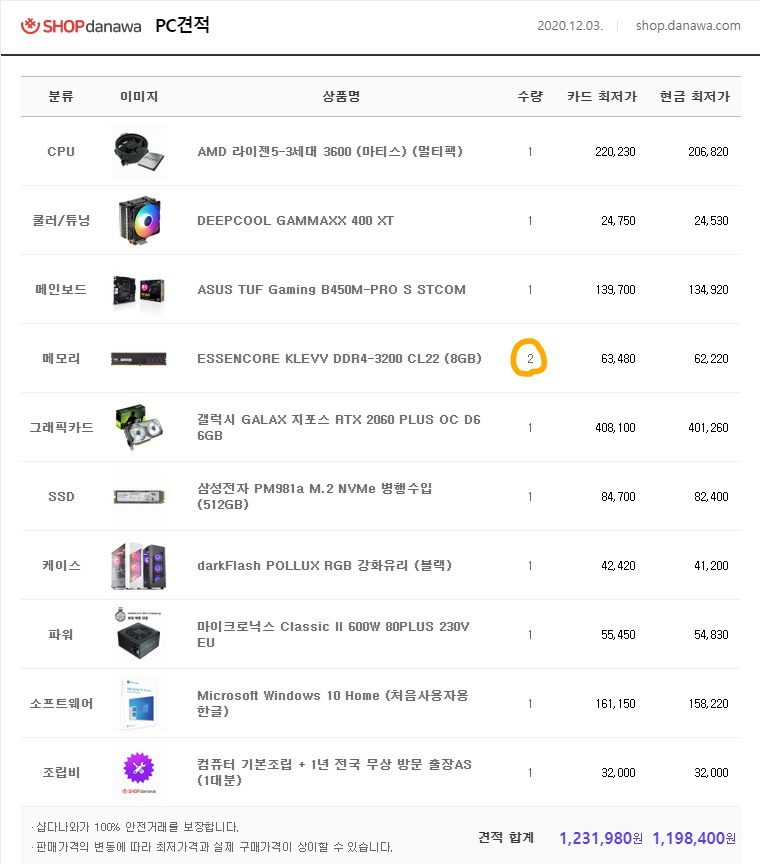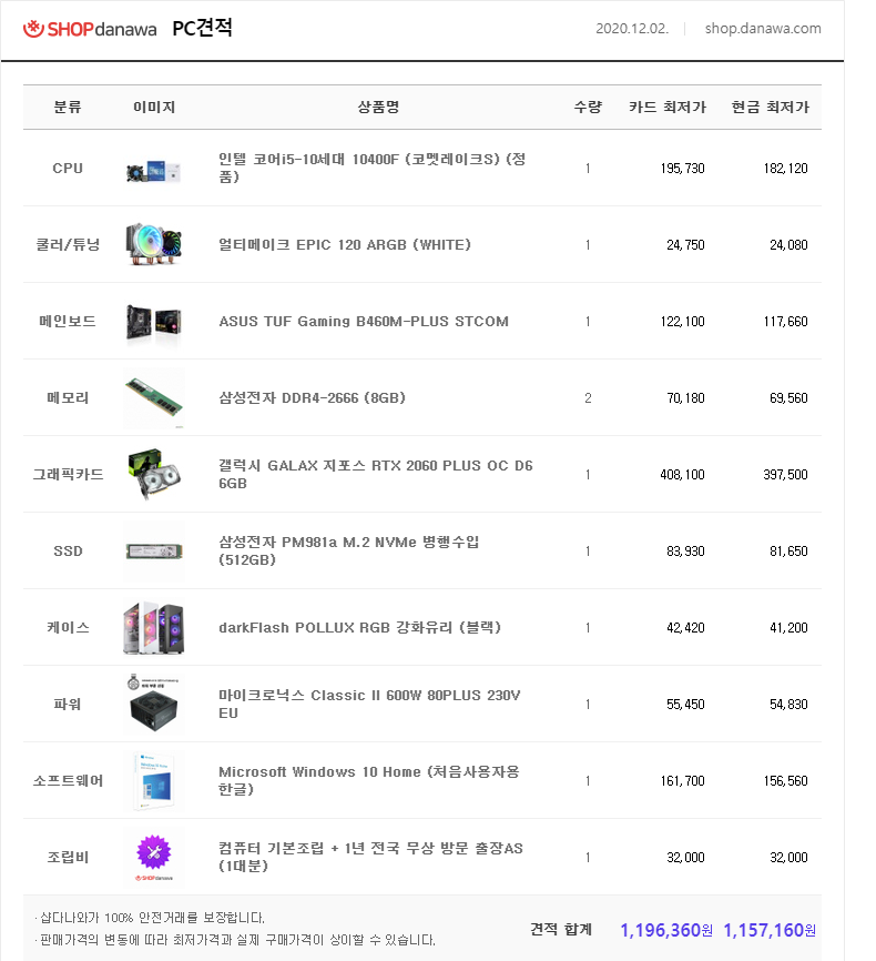 ** 2020.12.02 견적예시 12월 최신 업데이트 반영, 번외편 라이젠 4세대 견적 추가