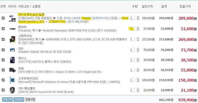 → 라이젠9 5950X, 상급 X570 메인보드, 3열 수랭쿨러, RTX 3090 가시면 되겠습니다.