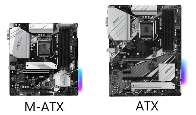 * M-ATX (Micro-ATX, 가로 24cm x 세로 24cm): ATX보다 약간 작은 사이즈.