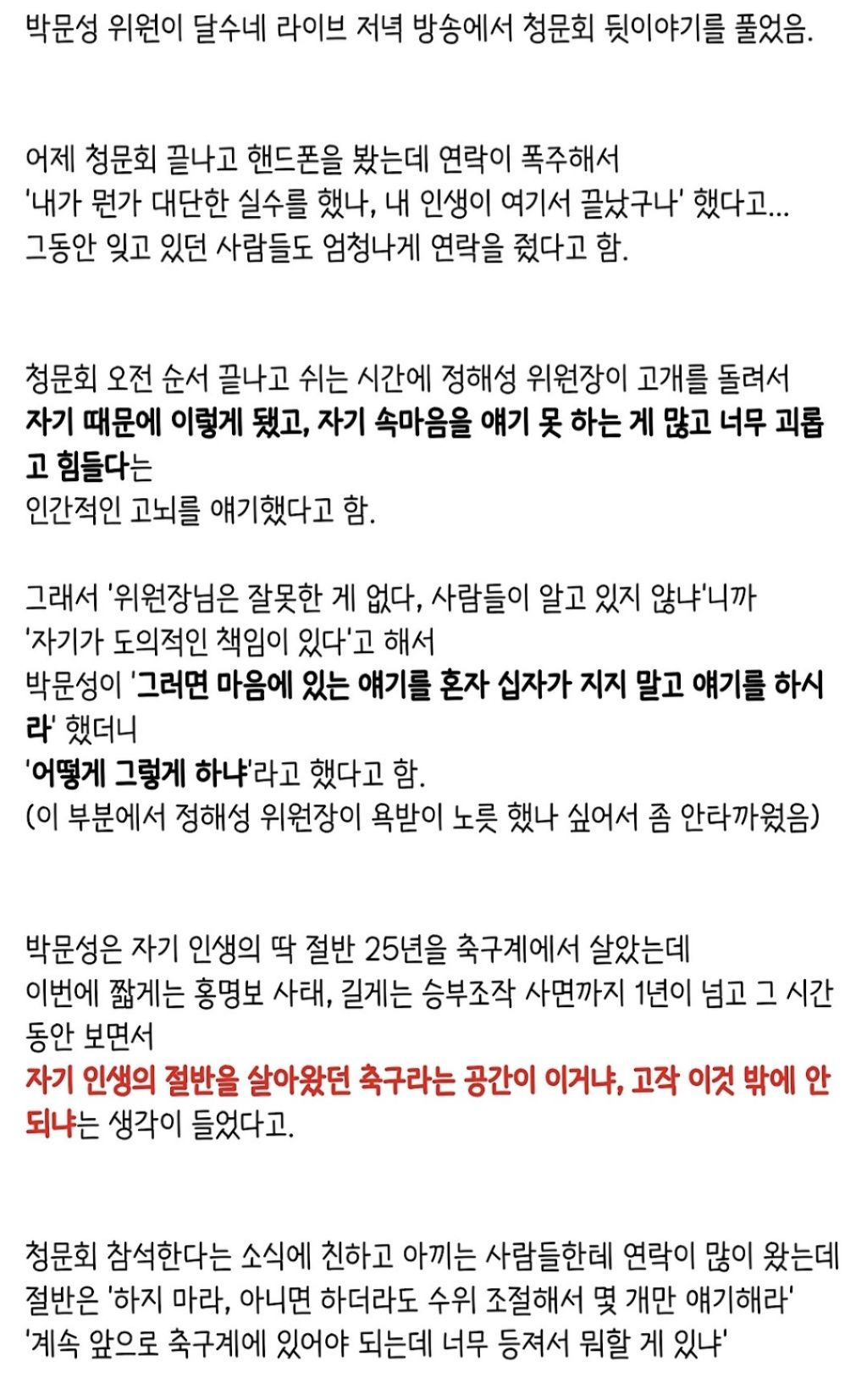 [스크랩] 박문성이 청문회에서 소신발언을 했던 이유 작성자let down|작성시간24.09.26|조회수5,444 목록 댓글 19 글자크기 작게가 글자크기 크게가 다음검색 스크랩 원문 : 이종격투기 현재 게시글 추가 기능 열기 북마크 공유하기 신고 센터로 신고 댓글 댓글 19 댓글쓰기 답글쓰기 댓글 리스트 작성자Florence Pugh | 작성시간 24.09.26 갓문성! 작성자방패연 | 작성시간 24.09.26 문성이형 진짜 멋있는 사람이네 작성자꿈꾸는피치 | 작성시간 24.09.26 박수와 존경! 작성자호다다다닥 | 작성시간 24.09.26 지켜줍시다 작성자릴카 | 작성시간 24.09.26 킹 댓글 전체보기