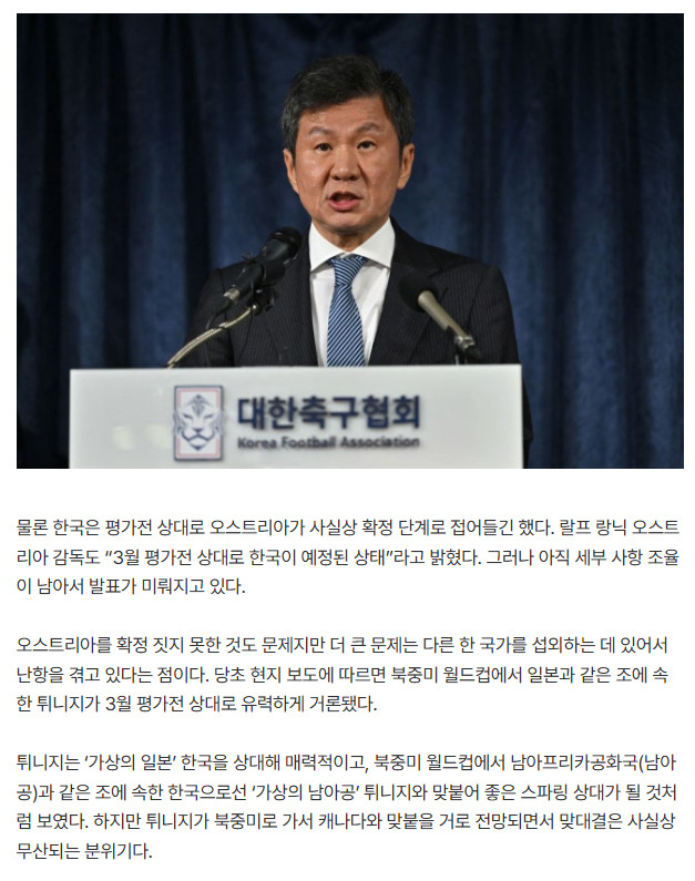뭐야? 오스트리아와의 원정 평가전도 거의 확정 아니라는 거네?