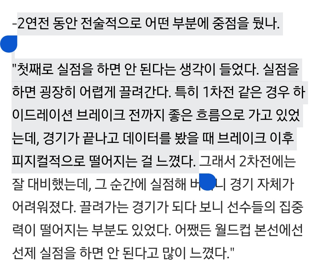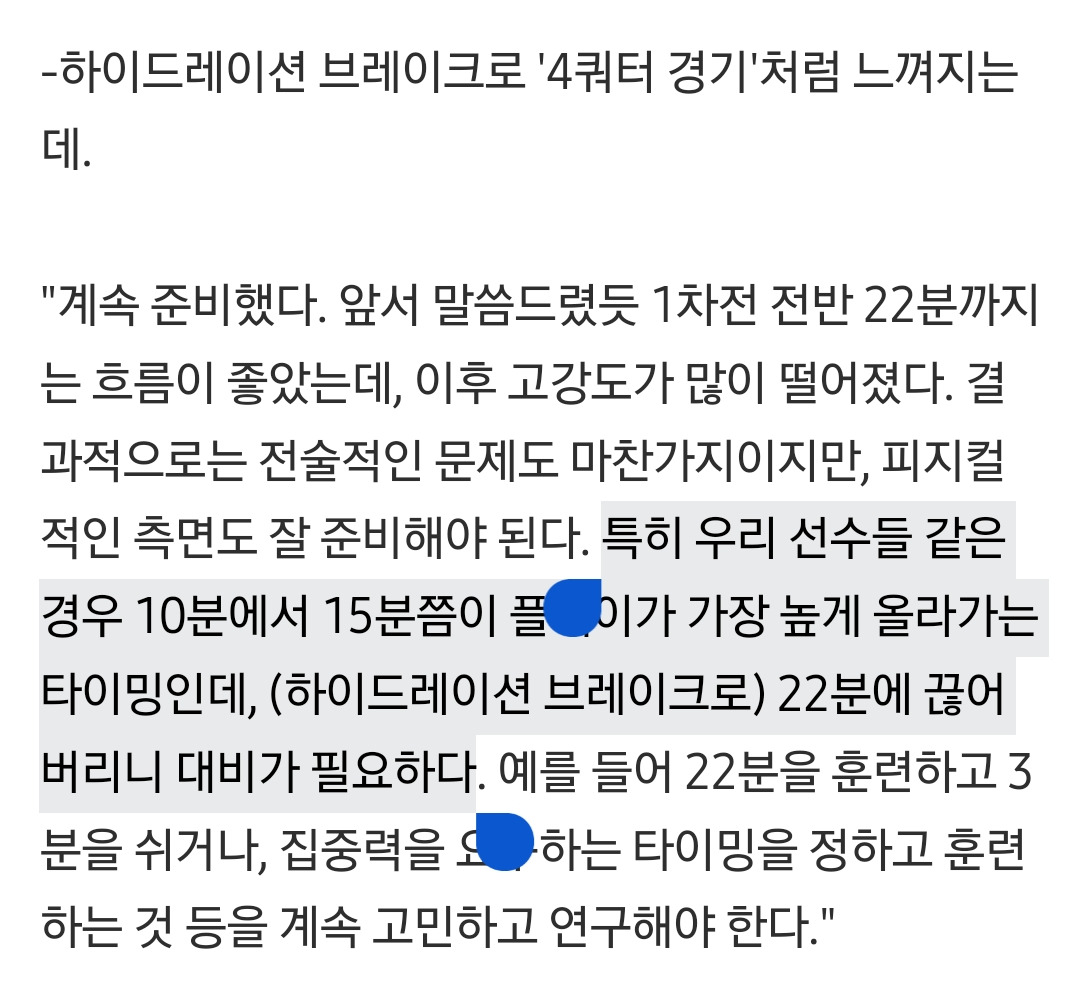 4. 브레이크 이후 경기 재개하니 우리 선수들 피지컬적으로 이전보다 떨어지더라. <-???