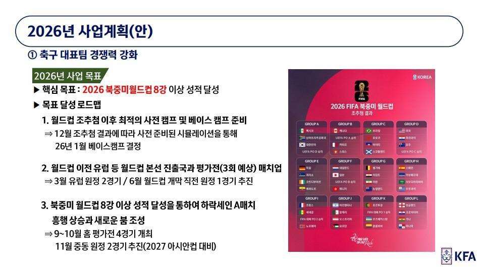 핵심목표 : 2026 북중미월드컵 8강 이상 성적 달성