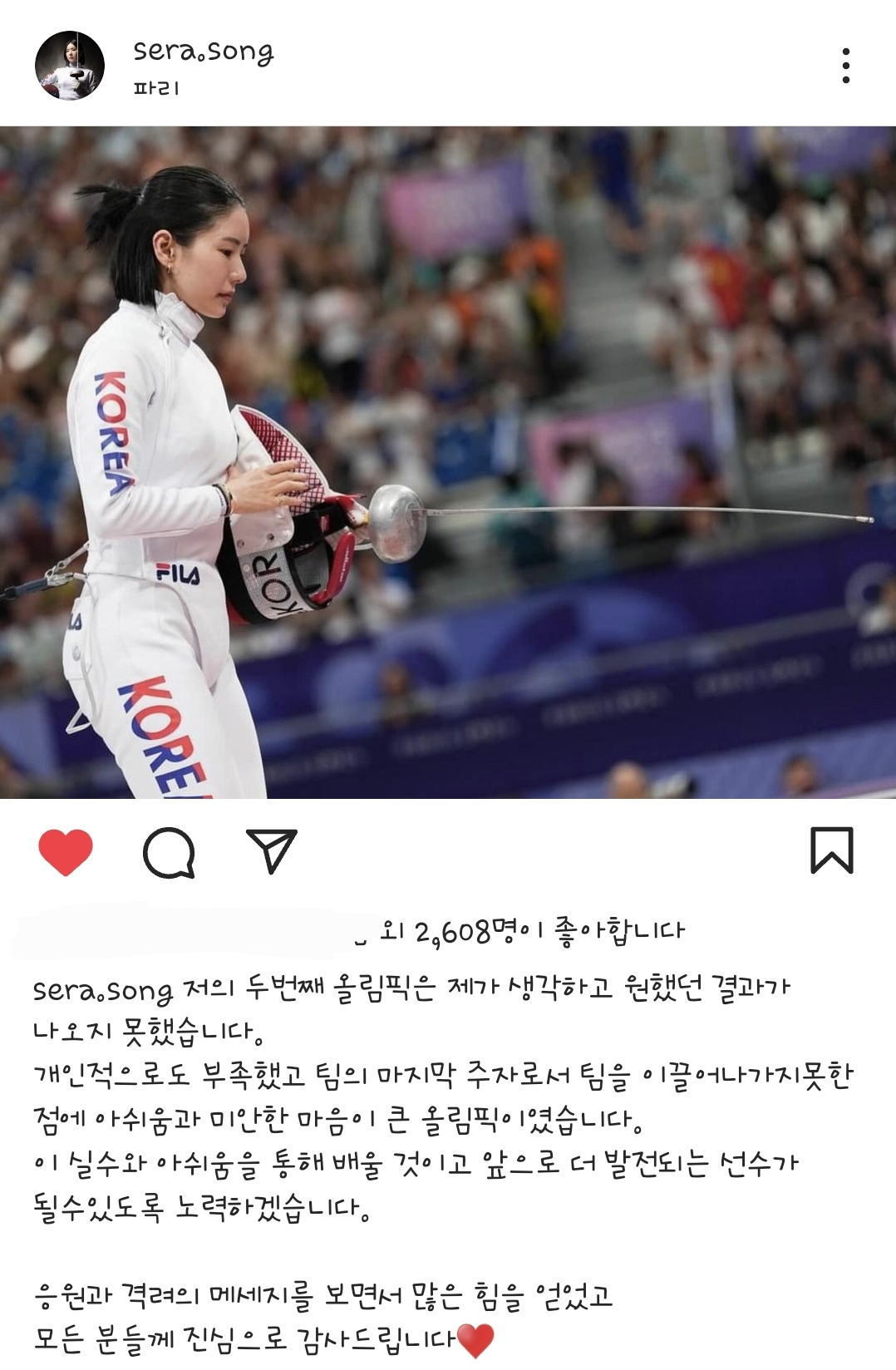 樂soccer [펜싱] 여자 에페 국가대표 송세라 선수 인스타그램.jpg 작성시간24.08.01|조회수4,959 목록 댓글 3 글자크기 작게가 글자크기 크게가 You will Never Walk Alone 다음검색 현재 게시글 추가 기능 열기 북마크 공유하기 신고 센터로 신고 댓글 3 댓글 리스트 작성시간 24.08.01 YNWA🤺🤺🤺🤺 작성시간 24.08.01 작성시간 24.08.02 수고하셨습니다 카페 방문해 더 많은 댓글 만나기!