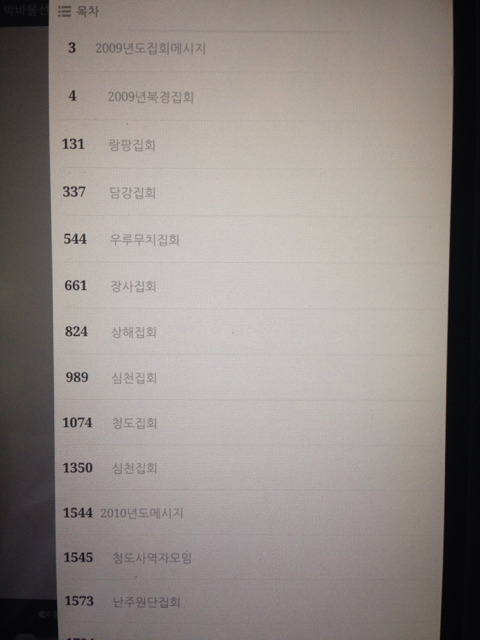 박선교사님 집회메시지 모음 (2009년~2014년) 이북파일 작성자파수꾼|작성시간14.08.31|조회수400 목록 댓글 2 글자크기 작게가 글자크기 크게가 선교사님 메시지 녹취된것을 하나로 묶었습니다.간단한 목차작업을한 이북파일입니다. 휴대폰이나, 타블렛, 이북단말기로 보시면 좋습니다.다운로드 링크https://www.dropbox.com/s/bwbuvlq8si8rojw/2009%EB%85%84%EC%97%90%EC%84%9C2014%EB%85%84%EB%B0%95%EB%B0%94%EC%9A%B8%EC%84%A0%EA%B5%90%EC%82%AC%EB%A9%94%EC%84%B8%EC%A7%80%EB%AA%A8%EC%9D%8C.epub?dl=0표지,목차, 내용표시 사진입니다. 다음검색 현재 게시글 추가 기능 열기 북마크 공유하기 신고 센터로 신고 댓글 댓글 2 댓글쓰기 답글쓰기 댓글 리스트 작성자LifeWay | 작성시간 14.08.31 좋은 자료 너무나 감사합니다~^^은혜 받는데 유익한 자료가 될 것 같습니다..^^ 작성자이찌로 | 작성시간 14.10.08 ㅎㅎㅎㅎㅎ 댓글 전체보기