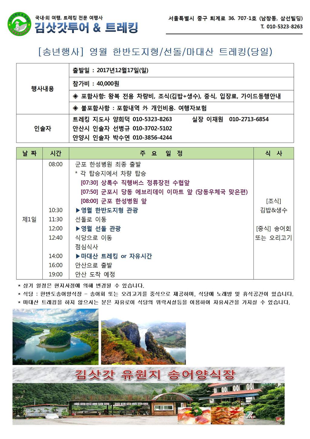 김삿갓투어 12월 정기트레킹 공지입니다.