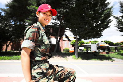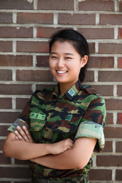 "사실 고등학교를 졸업하고 바로 입대하려고 했었어요"라고 수줍게 웃는 그녀.