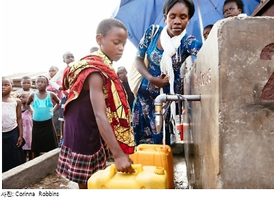 수도꼭지에 줄을 서서 기다리는 시간은 새벽과 저녁시간에 제일 길다. 그 시간에는 적어도 한 시간은 기다려야 한다. 그리고 기다리는 사람의 대다수는 Angel과 같은 어린 소녀들이다.