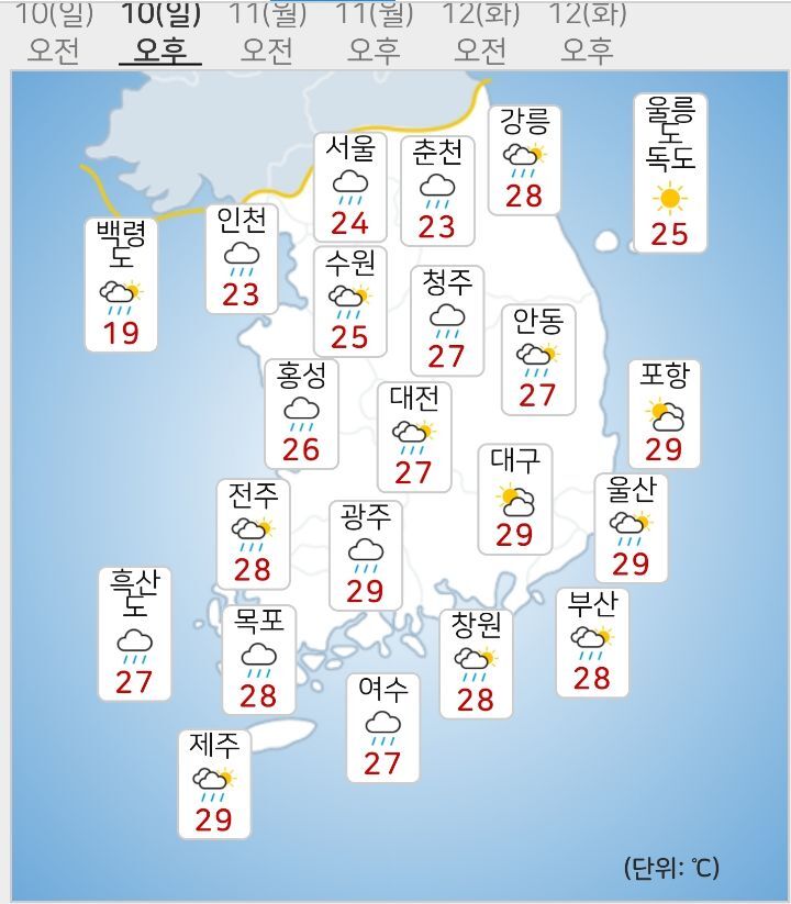 - 오늘(10일) 낮최고기온은 22~29도가 되겠습니다.