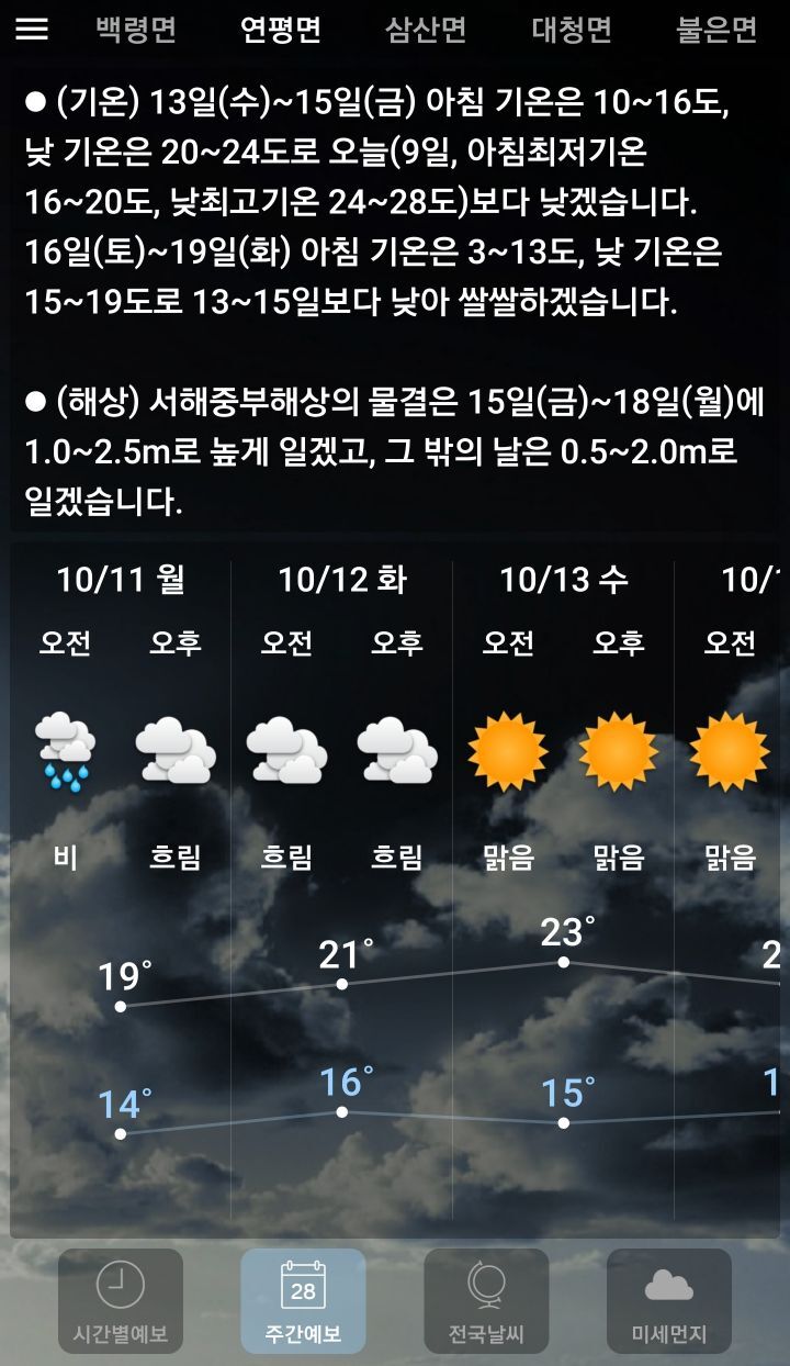 ※ 10월 10일부터 10월 12일까지의 전망입니다.