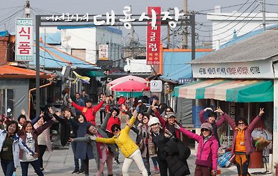 교동도 최고 번화가 대룡시장. 오래된 골목시장 풍경이 관광객을 꾸준히 불러 모은다.