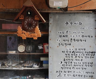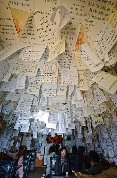 시간이 멈춘 듯 옛 풍경을 간직한 교동다방에 손 편지가 잔뜩 붙어 있다.