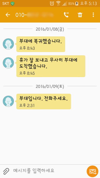 ㆍ전화를 걸 수는 없고 특정내용으로 전화를 달라는 문자(예: 아들입니다 전화주세요. 부대입니다 전화주세요 등)를 보낼 수 있습니다.