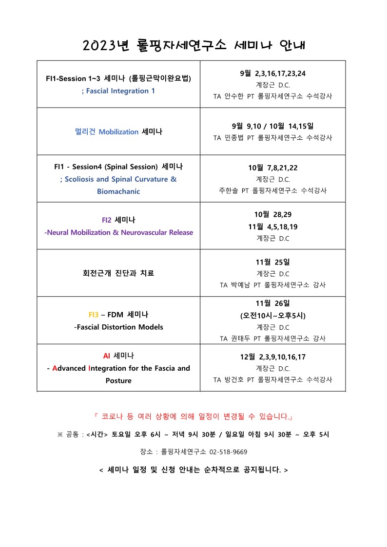 [세미나일정표]9월~12월 롤핑자세연구소 세미나 일정표 작성자chirojk|작성시간23.08.26|조회수577 목록 댓글 0 글자크기 작게가 글자크기 크게가 다음검색 현재 게시글 추가 기능 열기 북마크 공유하기 신고 센터로 신고 댓글 댓글 0 댓글쓰기 답글쓰기 댓글 리스트