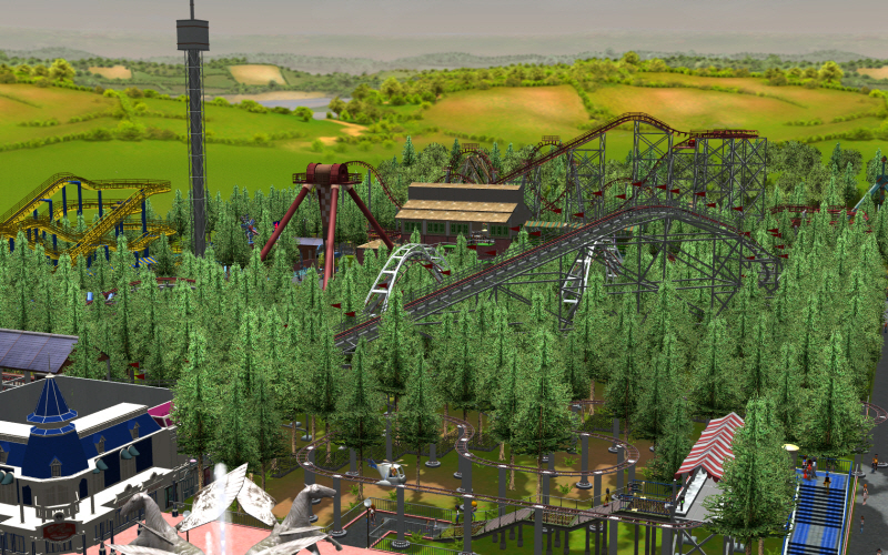 콕스크류 롤러코스터가 대각선 리프트를 사용해서 삼각형 모양의 빈공간에..ㅋ