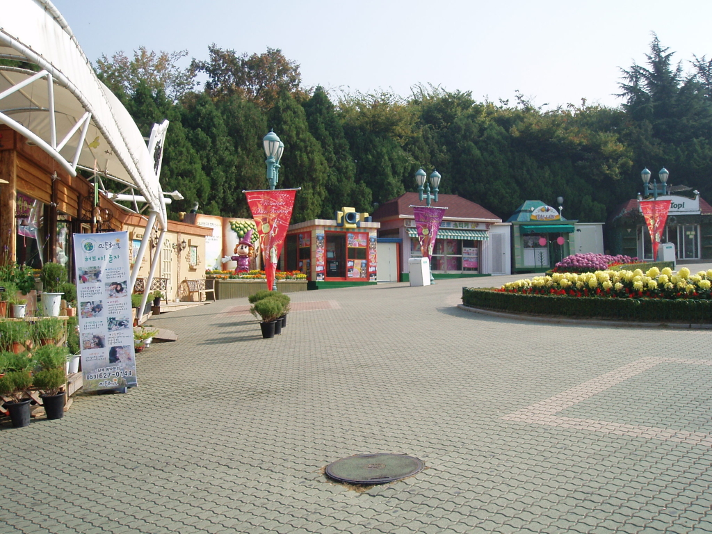 진입광장입니다. 모자,풍선,완구등을 파는건물들이 있습니다.