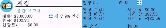 재정 상태 : 기본 자금 10,000$인데 대출이 10,000$가 되어있음 이게 말이 됨? 최대한 20,000$까지 빌릴 수 있구요