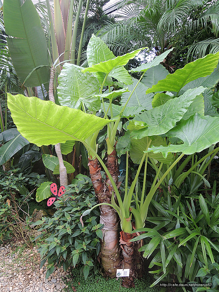 알로카시아속의 식물은 주로 인도네시아와 태평양의 섬에서 자라며 우리에게는 관엽식물로 잘 알려져 있으나 원산지에서는 구경을 식용으로 이용하고 있습니다.