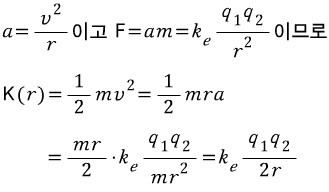 이제 운동에너지 K(r)을 구해봅시다. 가정에서 전자가 궤도를 등속원운동한다고 했죠.