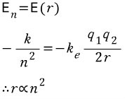 그런고로 궤도의 반지름이 주양자수의 제곱에 비례한다는걸 알 수 있습니다.