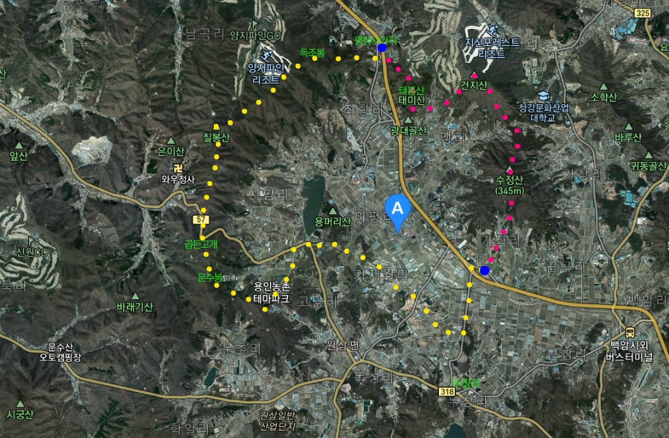 계획상으로 저 지점(황토현마을)에서 한남정맥에 합류 할 생각이다.