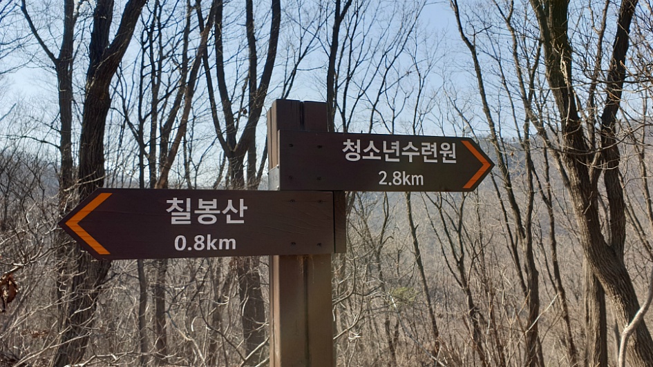 진행방향으로 세갈래길이 펼쳐지는데 어떻게 이 표시가 맨 오른쪽이라는 건지...