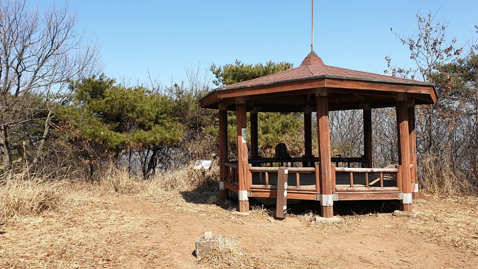 문수봉에 부부로 보이는 한팀이 식사중인데 팔각정이 텅 비어 있다. (내배낭)