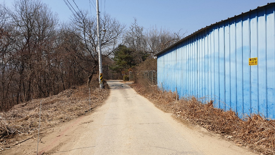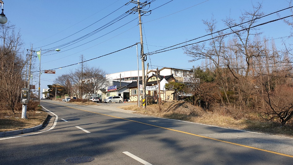 가좌리 버스정류장에서 출발해 20분정도는 2차선 도로를 걷는다.