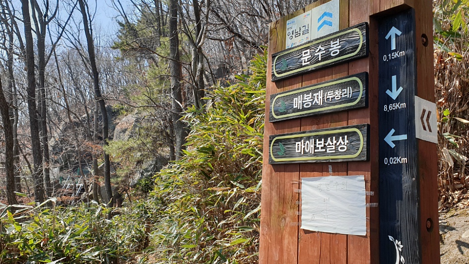지금부터는 한남정맥길을 걸어 문수봉까지 걷는다.