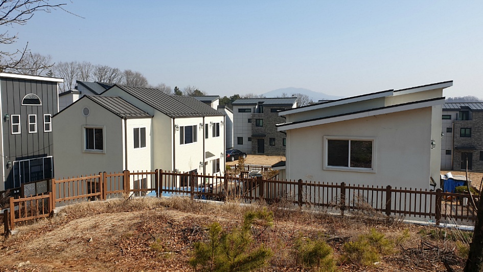 전원주택이 보이는데 차고지는 태양광으로 덮었다.