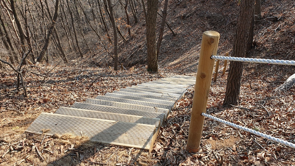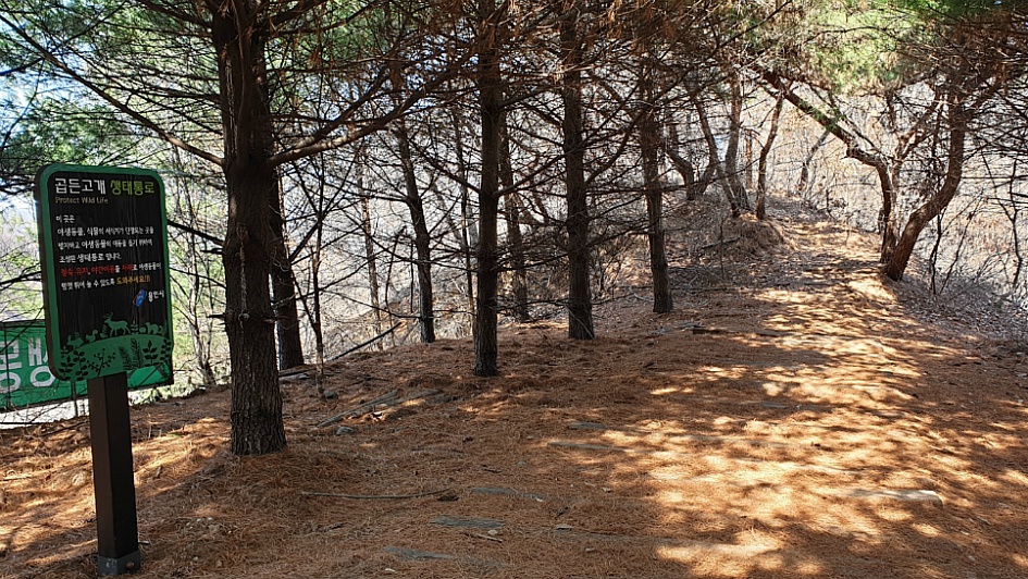 터널 왼쪽으로 올라 생태통로를 따라 이동한다.