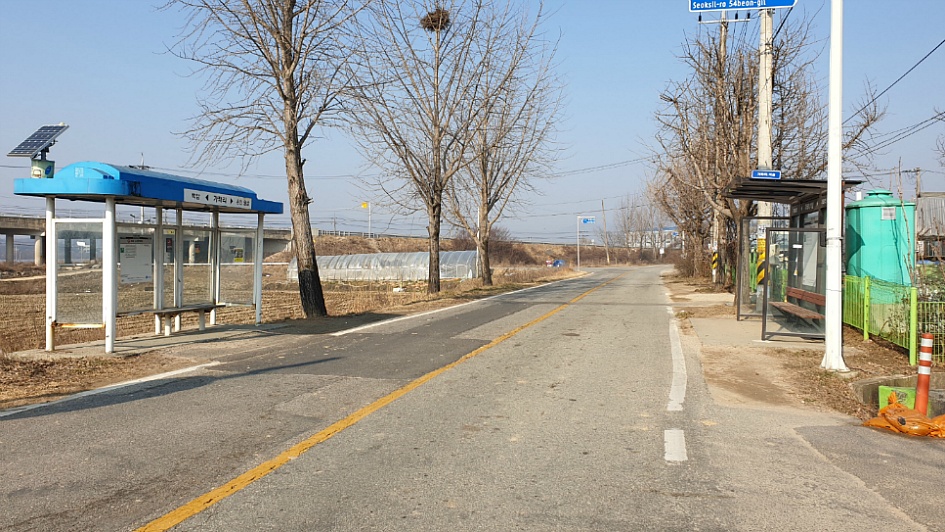 2주전 용인 수정산~건지산~태봉산 산행 출발지인 가좌리 버스정류장에 다시 선다.