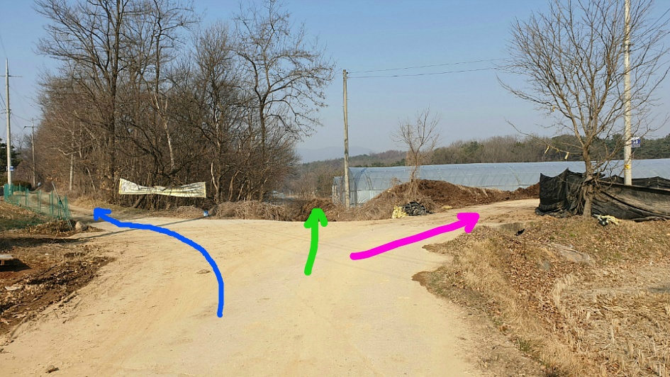 한남정맥길은 길 건너 장수농원방향으로 진행하는것인데
