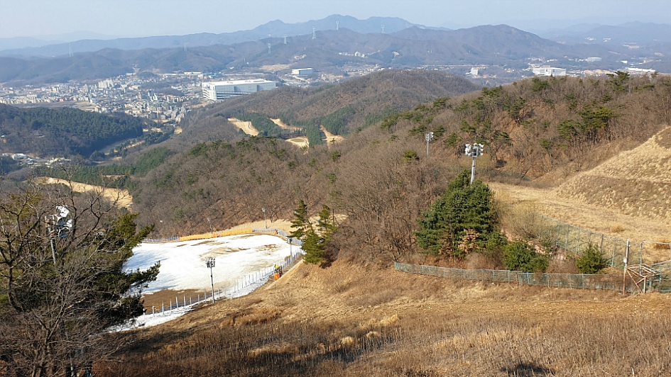평창사거리에서 지산리조트 진입로로 진입하지 않고 점선따라 태봉산으로 쉽게 오를수 있다.