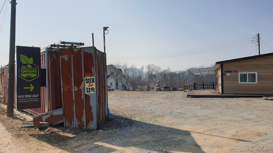 좀전에 솔바람캠핑장을 지나며 사자만한 개가 달려들어 깜짝 놀랐다.
