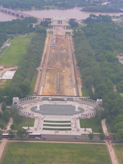 워싱턴 기념탑 위에서 바라본 링컨 기념관 쪽입니다. 저 가운데 황량한 공사모습 보이시죠?