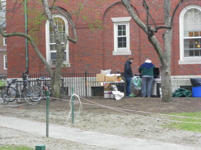 하버드 한구석에 바베큐 준비하는 학생들 모습입니다.