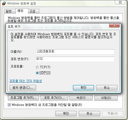 [[배틀넷]]6112 포트 에러가 뜨고 방 만들기나 들어가기가 안 된다면? / 네트워크 연결된 두 컴퓨터 간의 UDP 게임이 안 된다면?