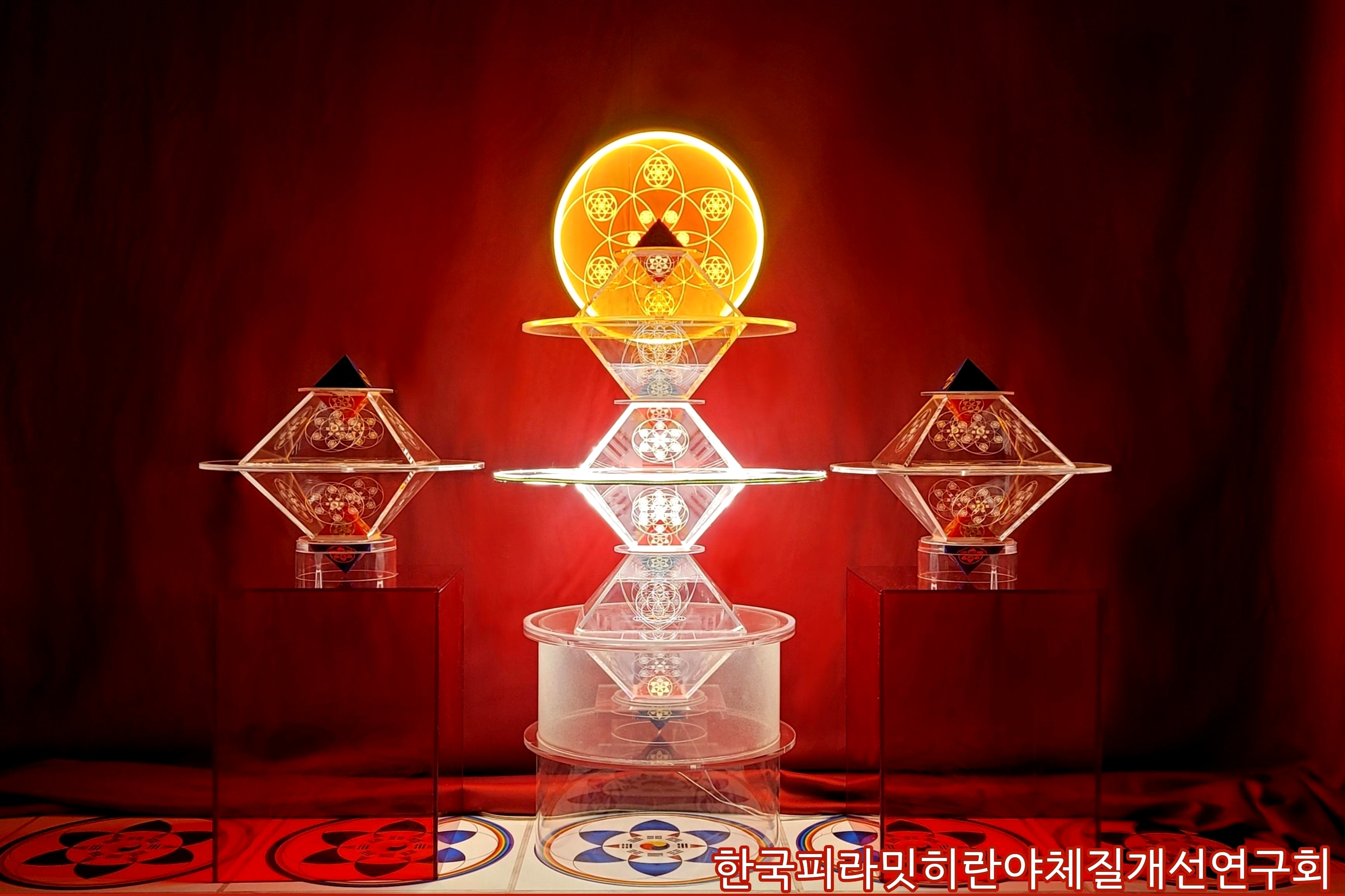 2025.09.10 명상실 재단장 : 《7단 머카바 피라미드 천부경 우주상생기 大형》 설치 (부가설명 : 십승지(十勝地))