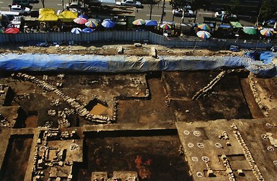 서울시가 ‘동대문디자인플라자 앤드 파크’ 조성을 추진 중인 옛 동대문운동장 터에서 2300㎡(700평)가 넘는 커다란 조선시대 군수공장(공방) 유적이 발견됐다.